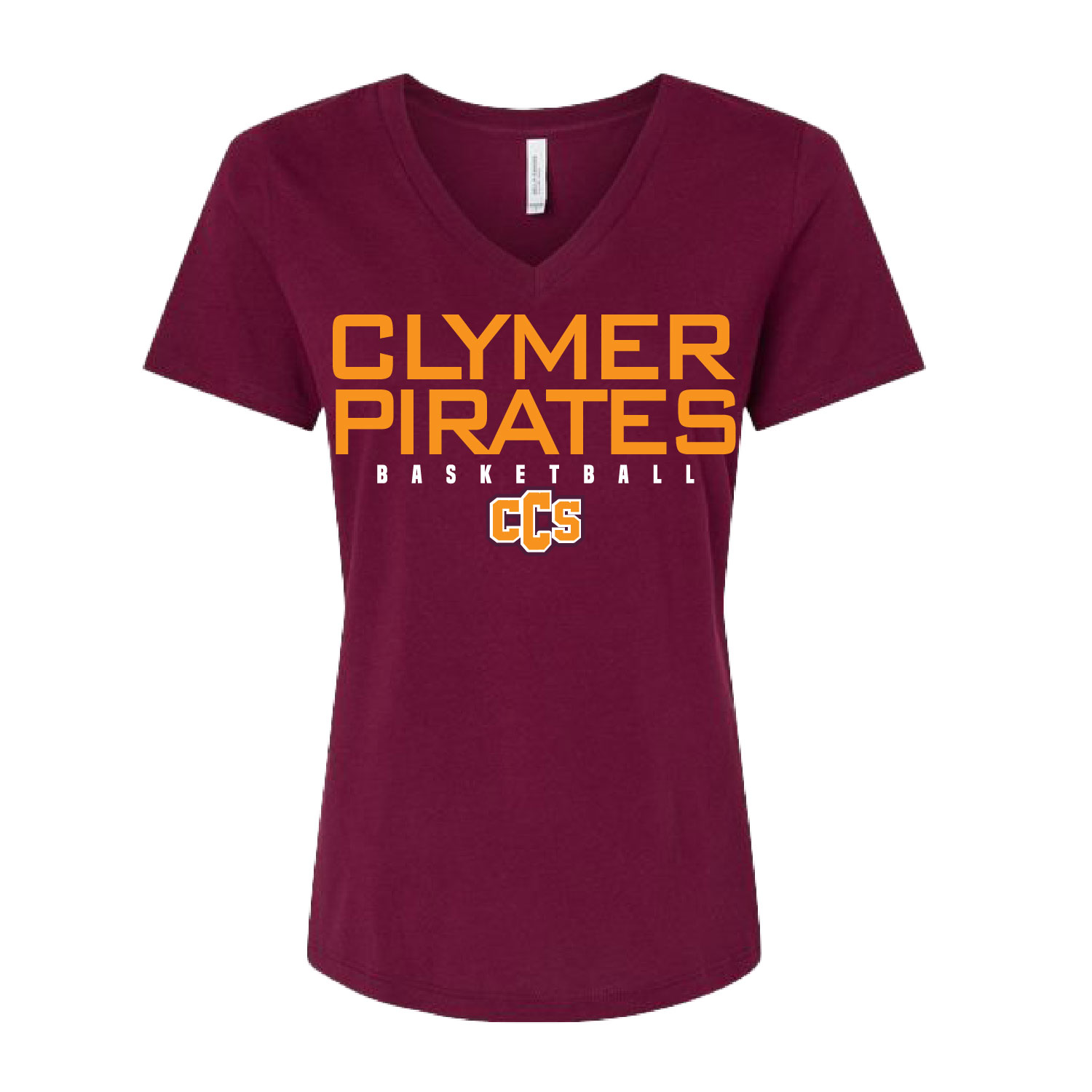 Clymer Basketball – Ladies VNeck Short Sleeve Shirt – Maroon