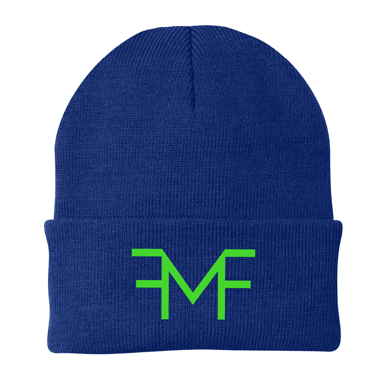 Foggy Mornin’ Farms- Knit Cuffed Beanie – Royal – Embroidered